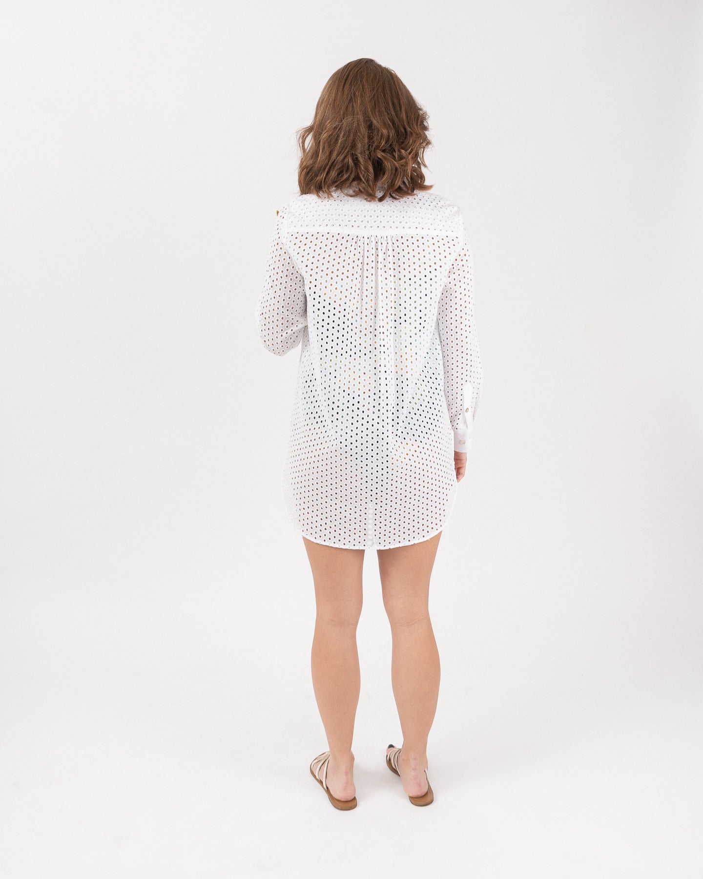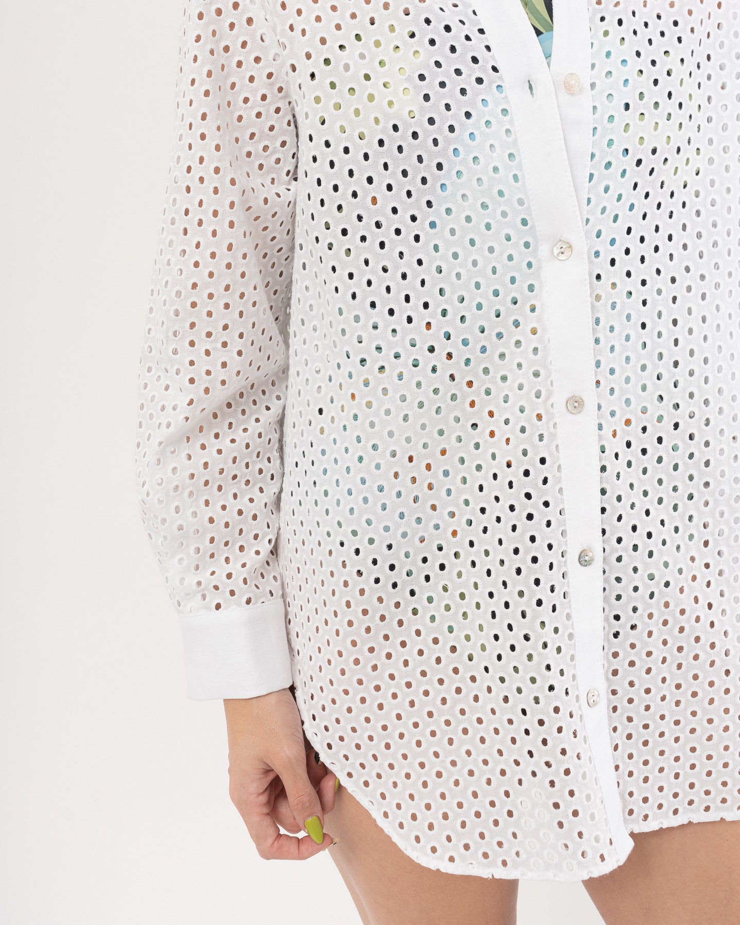 Camisero combinado con lino a tono en cuellos, carteras y puños.