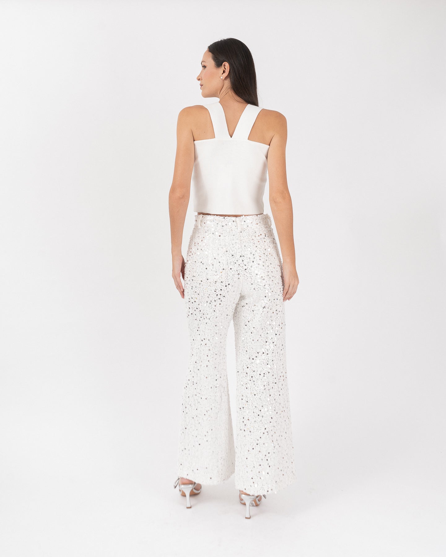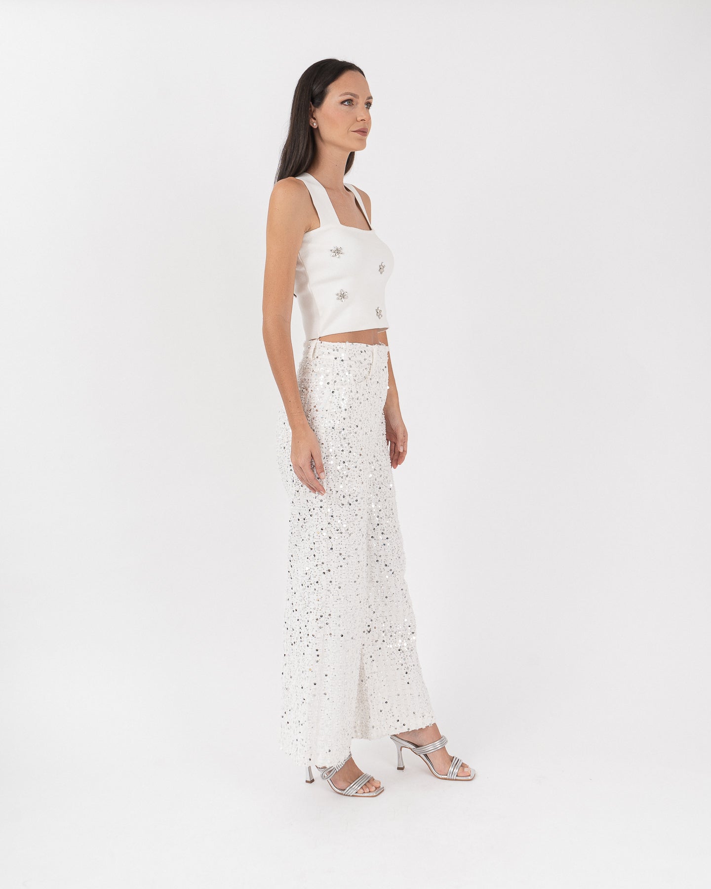 Top de cuello cuadrado de tiras con detalle bordados frontal