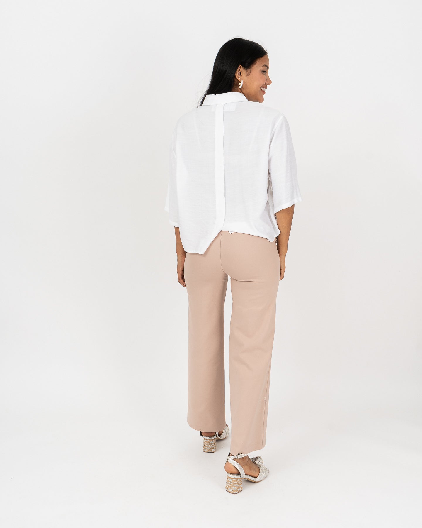 Pantalón de tiro alto con bolsillos funcionales delanteros y vivos en posterior. pretina y bragueta funcionales.