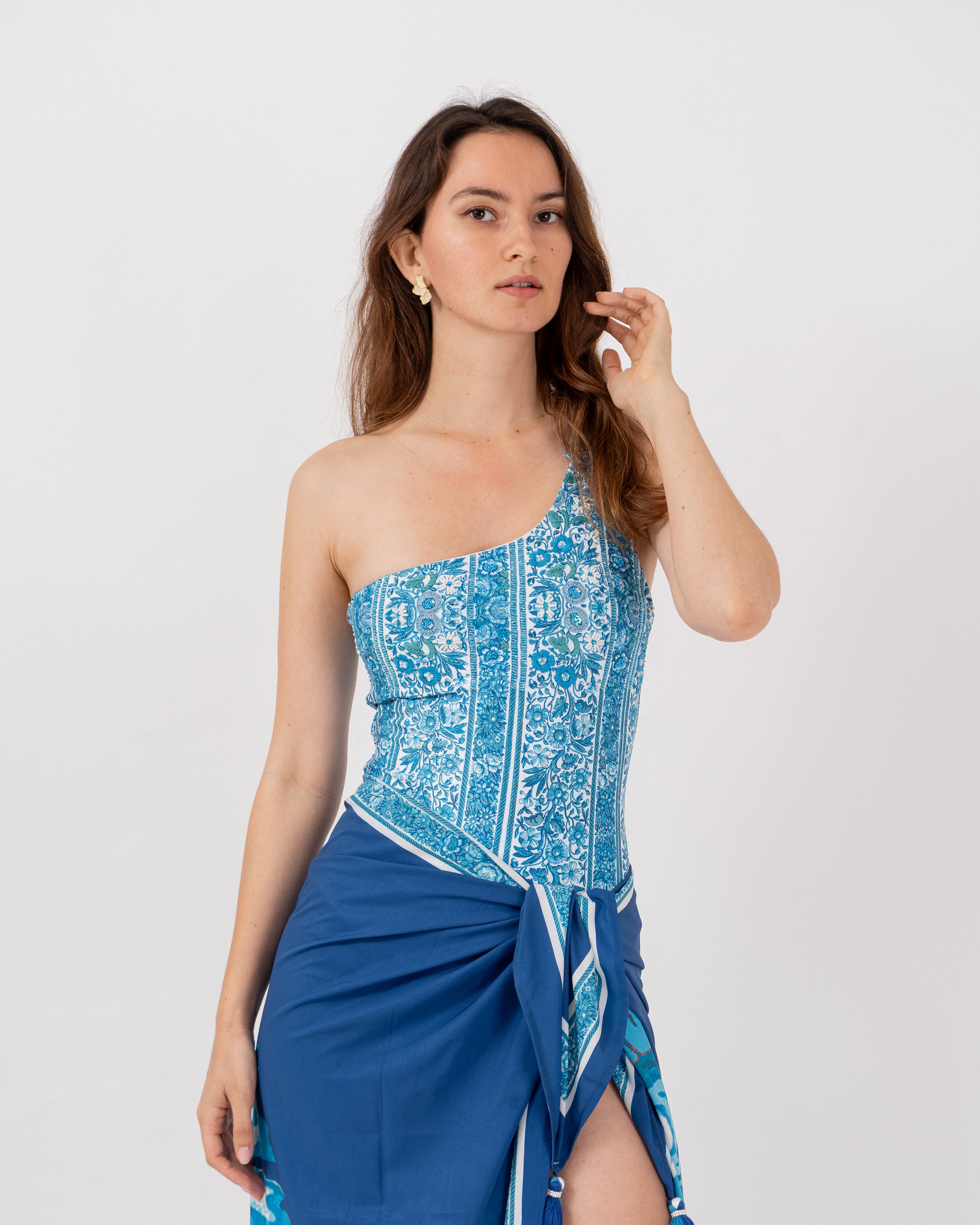 Pantalón de baño entero de un solo hombro amarrado