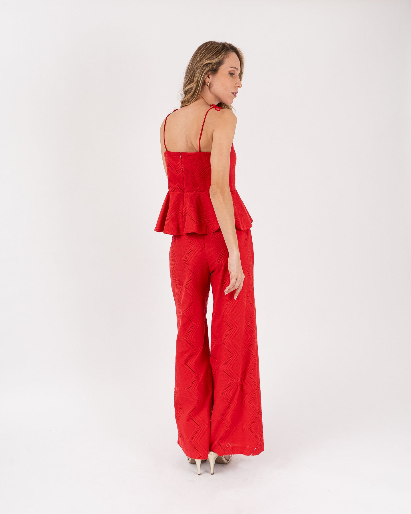 Top forrado de tirantes finos para ajustar amarre con detalles de punteras doradas, cierre invisible en centro posterior.