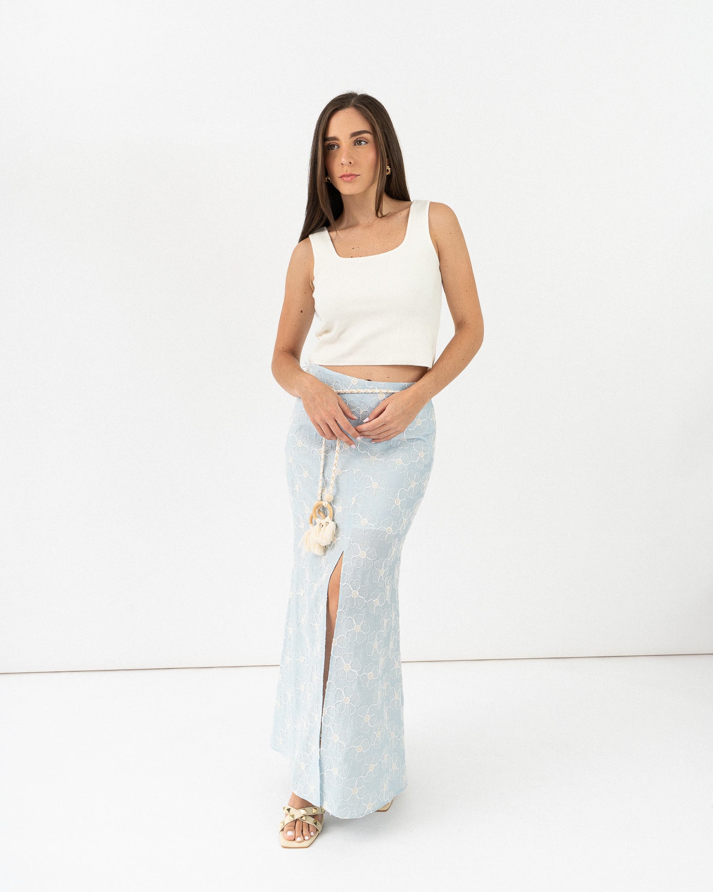 Square neck top with thick straps.