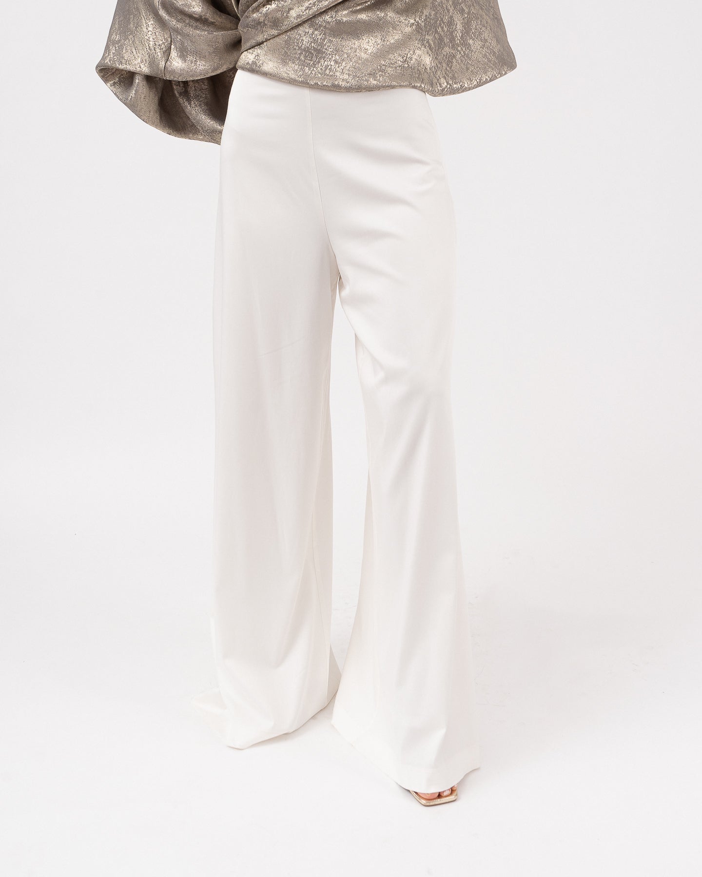 Straight leg pants with waistband and side zipper. Inner lining