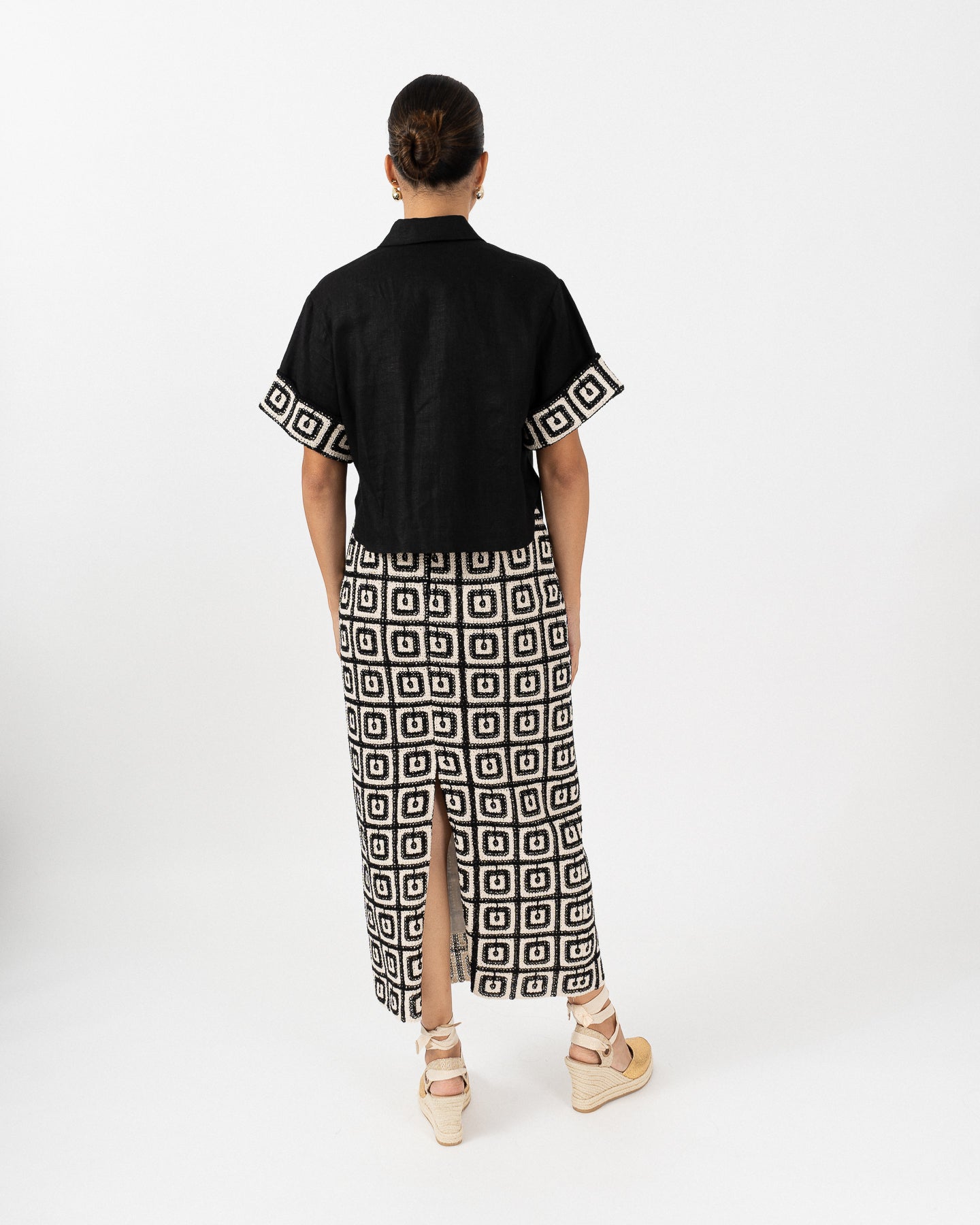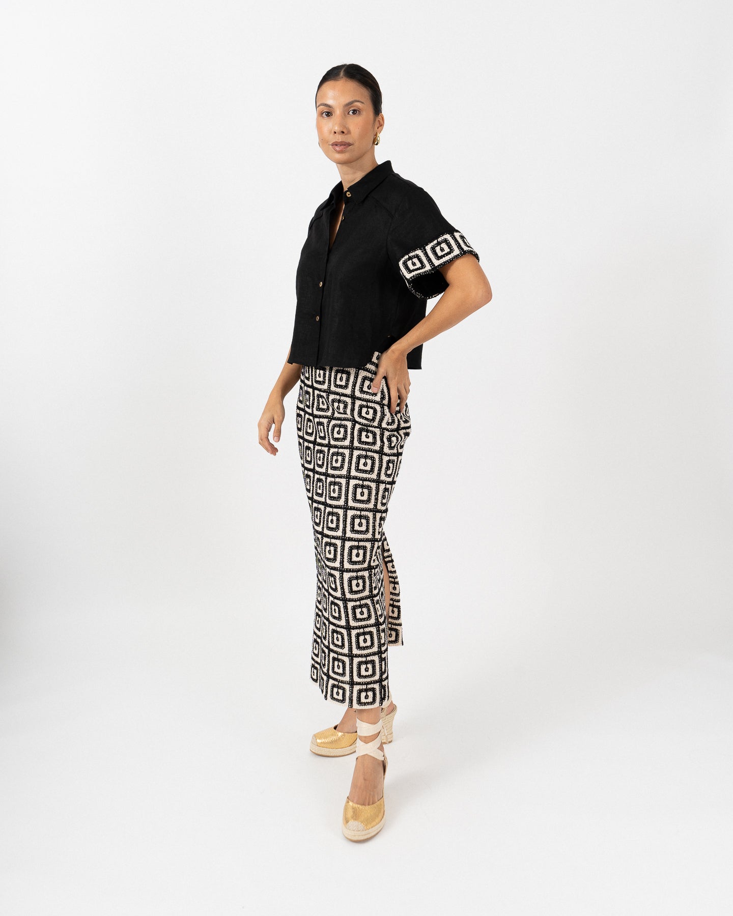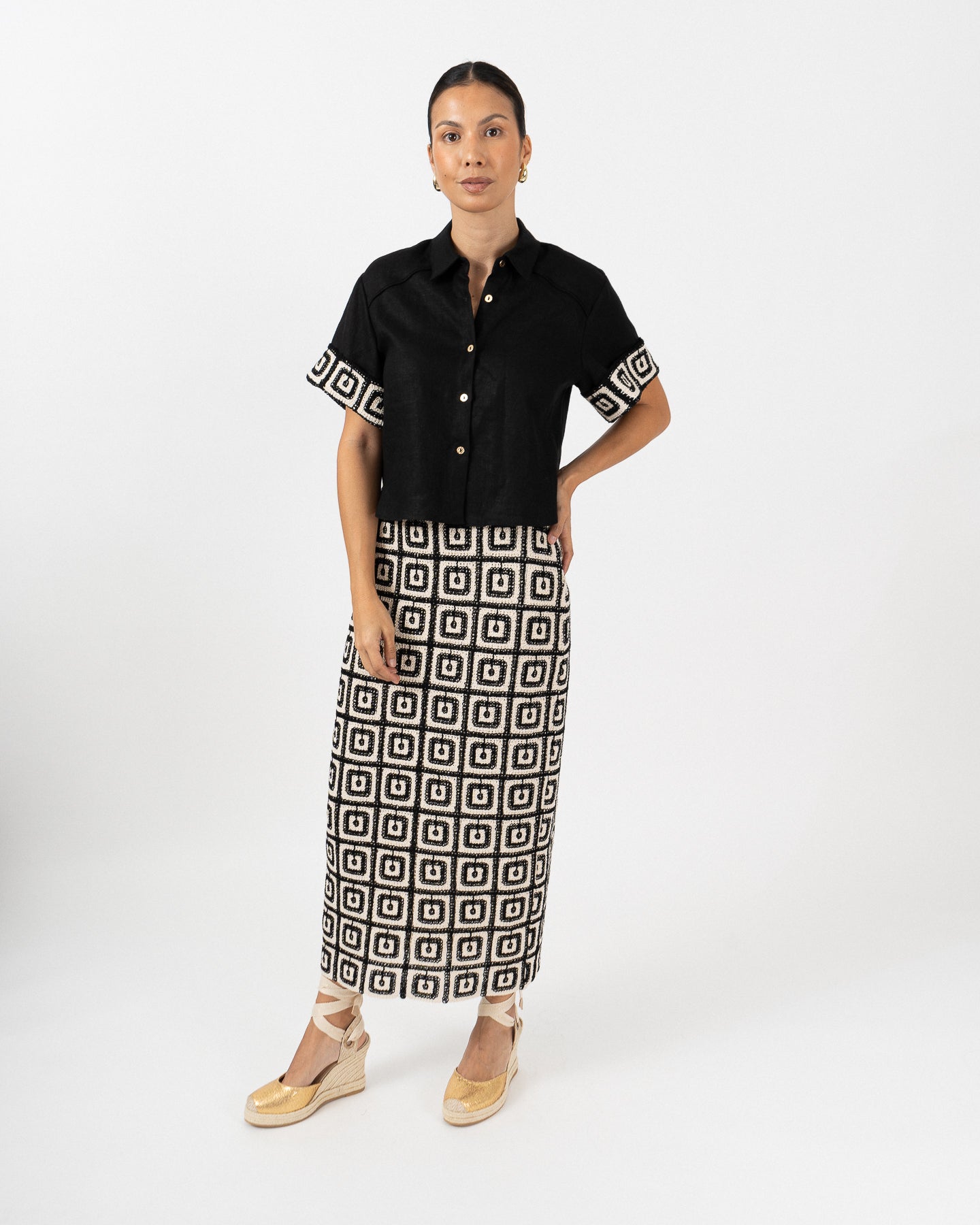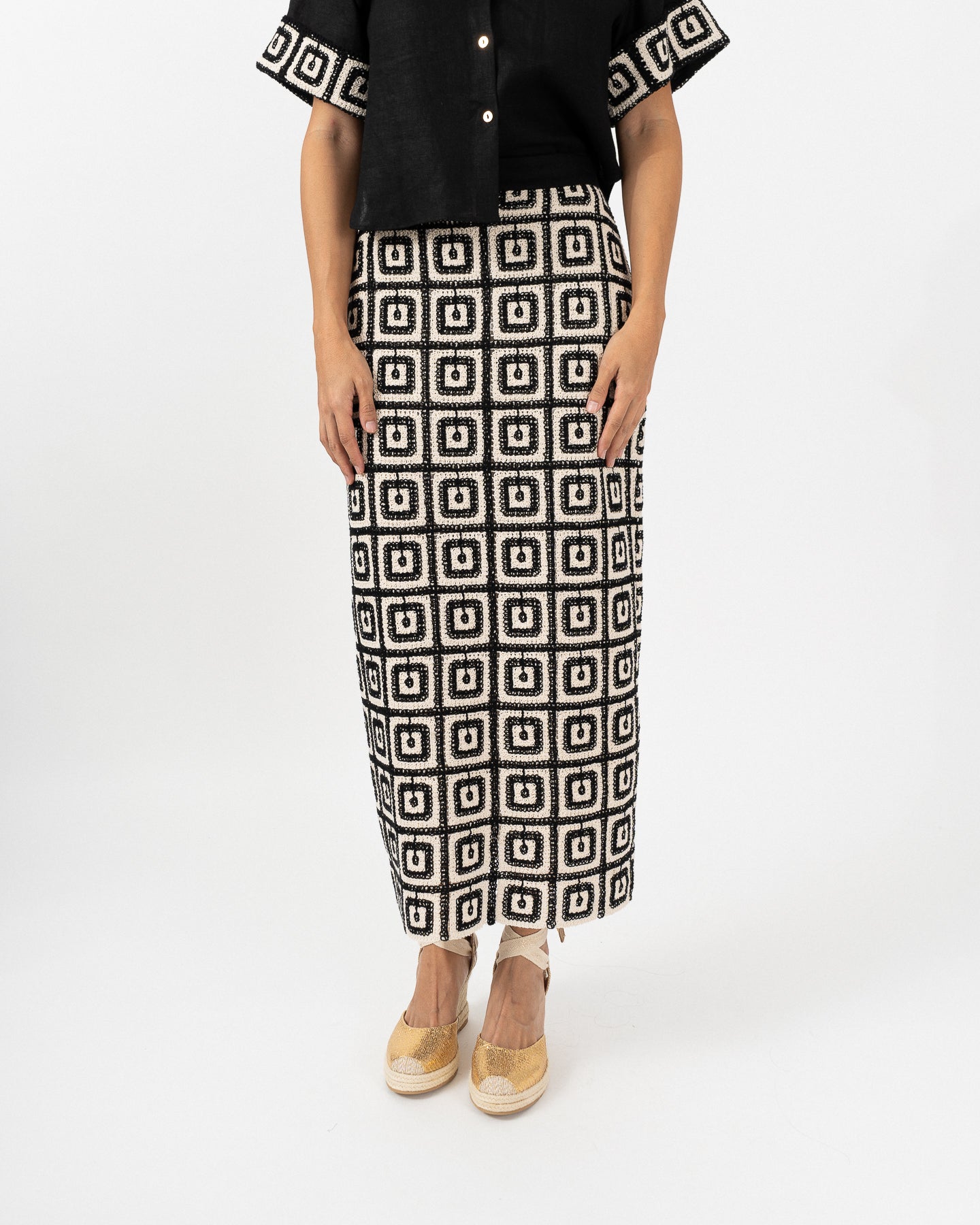Straight lined skirt with combined waistband, invisible closure at center back.