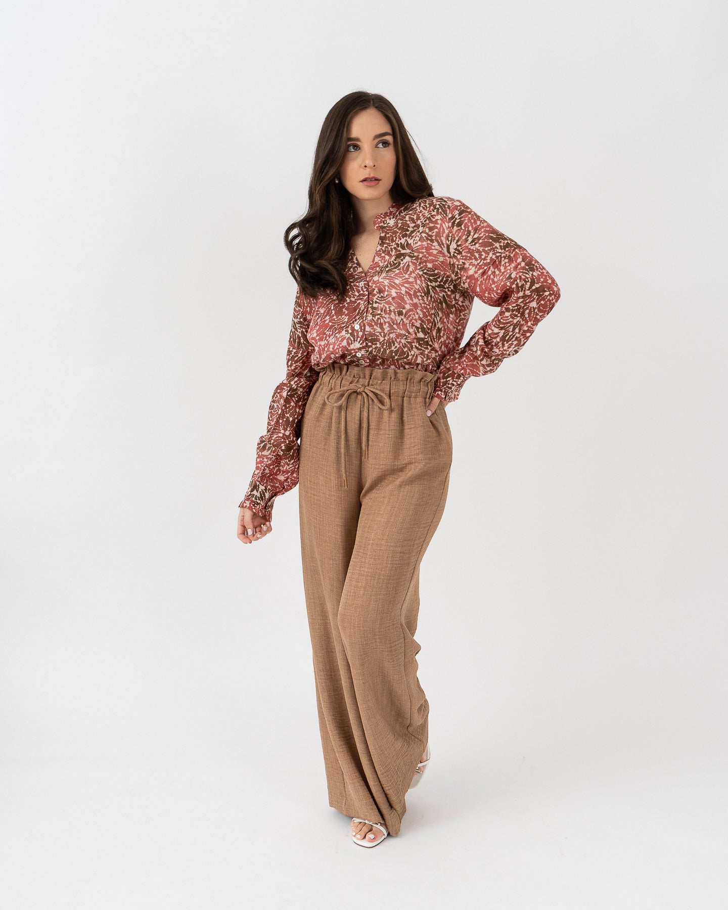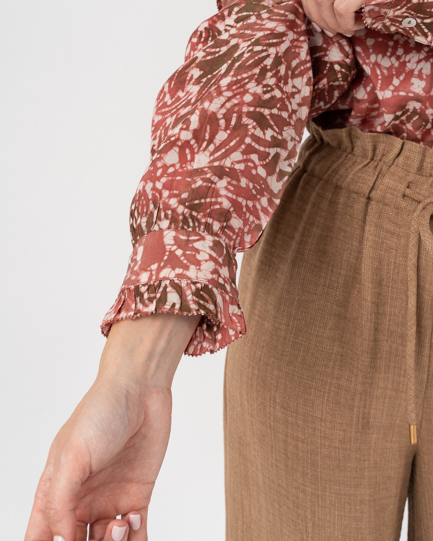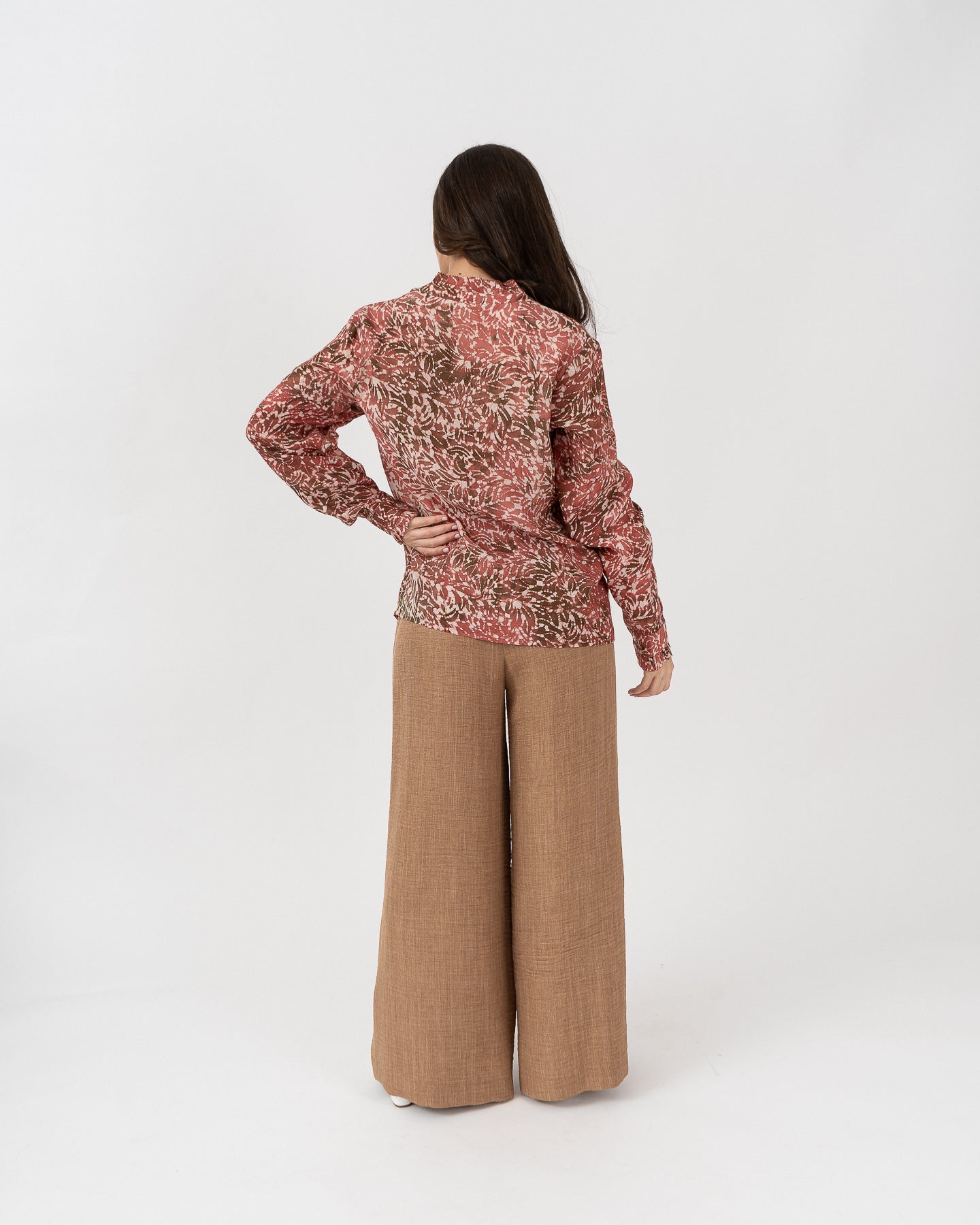 Printed long-sleeved blouse with cuffs