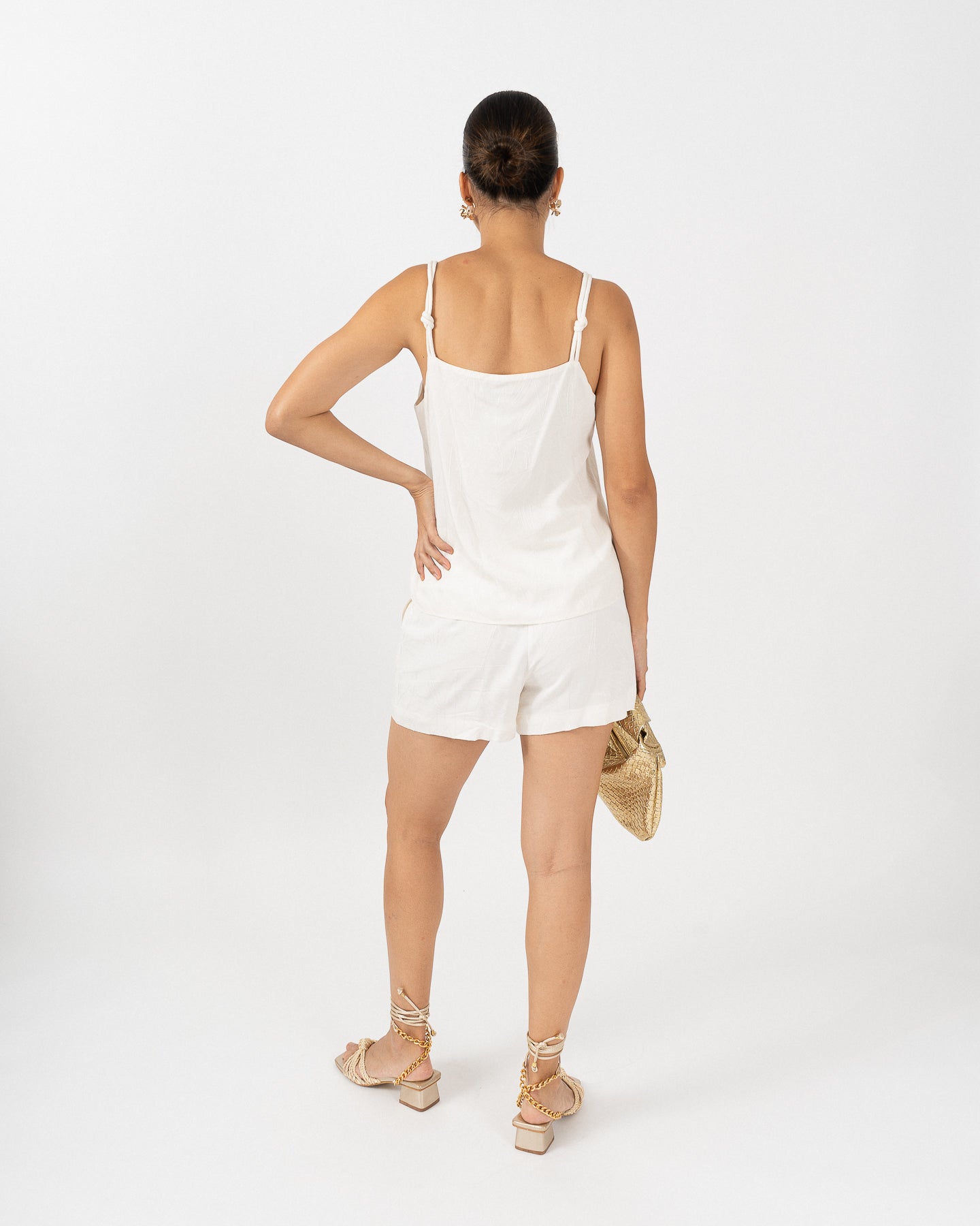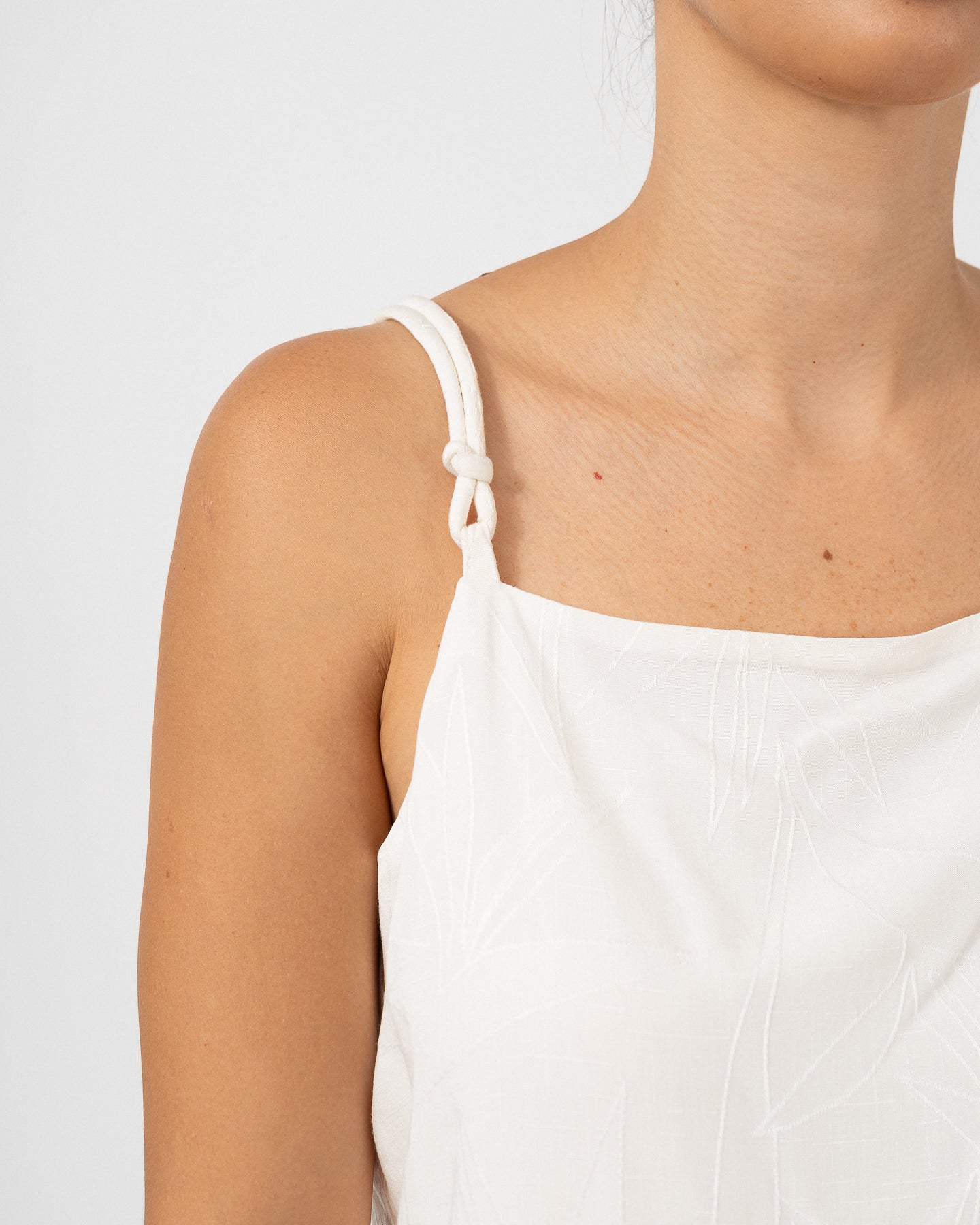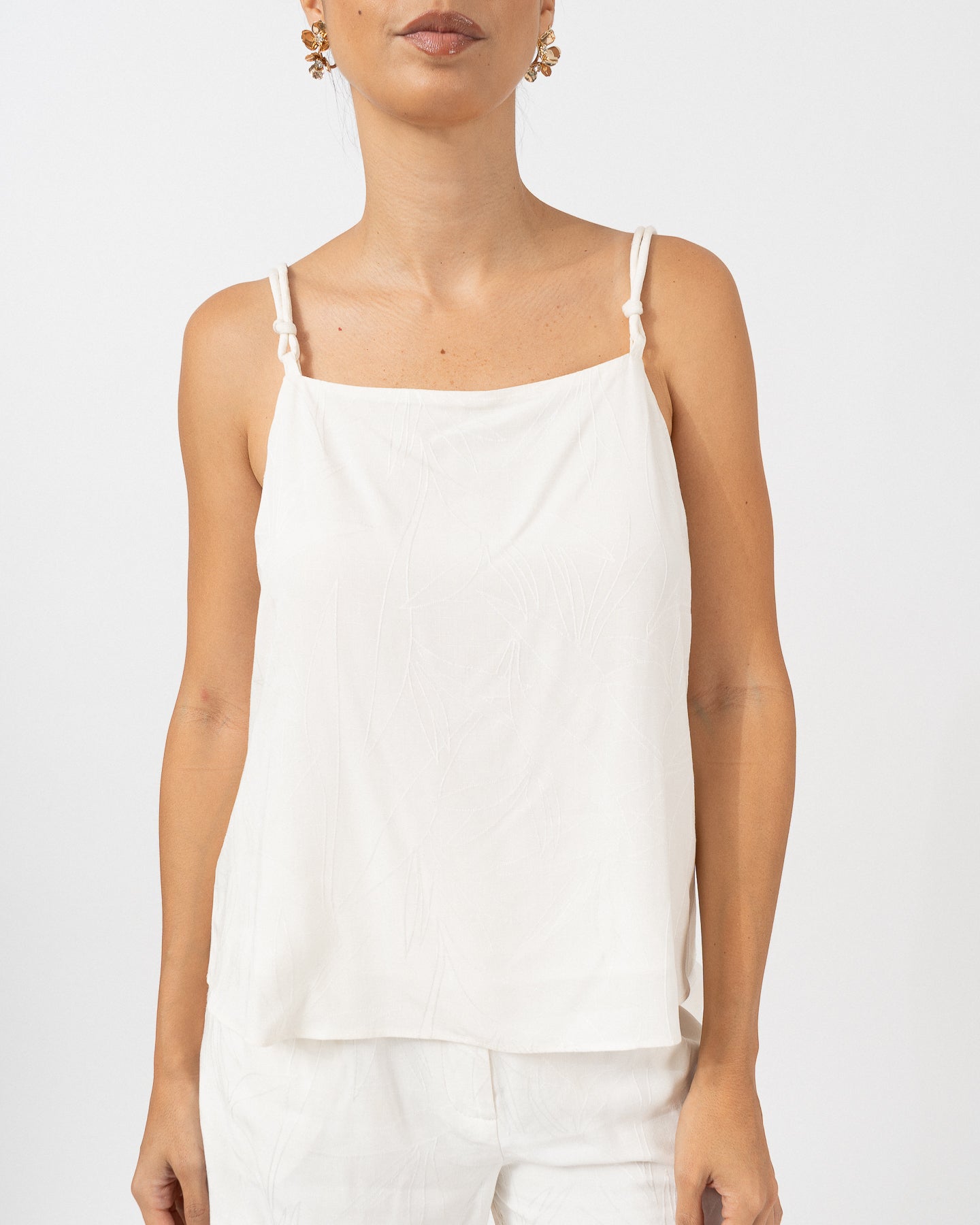Lined blouse with padded straps and decorative knots.