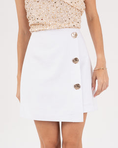 Blusa one shoulder en tejido de lentejuelas, solapa y blusa con recogido en costados