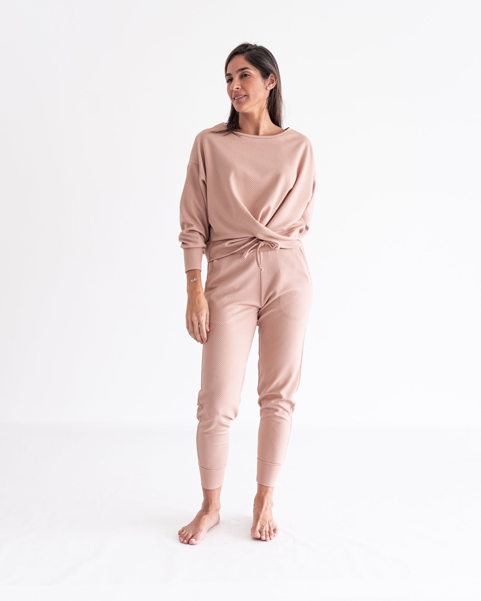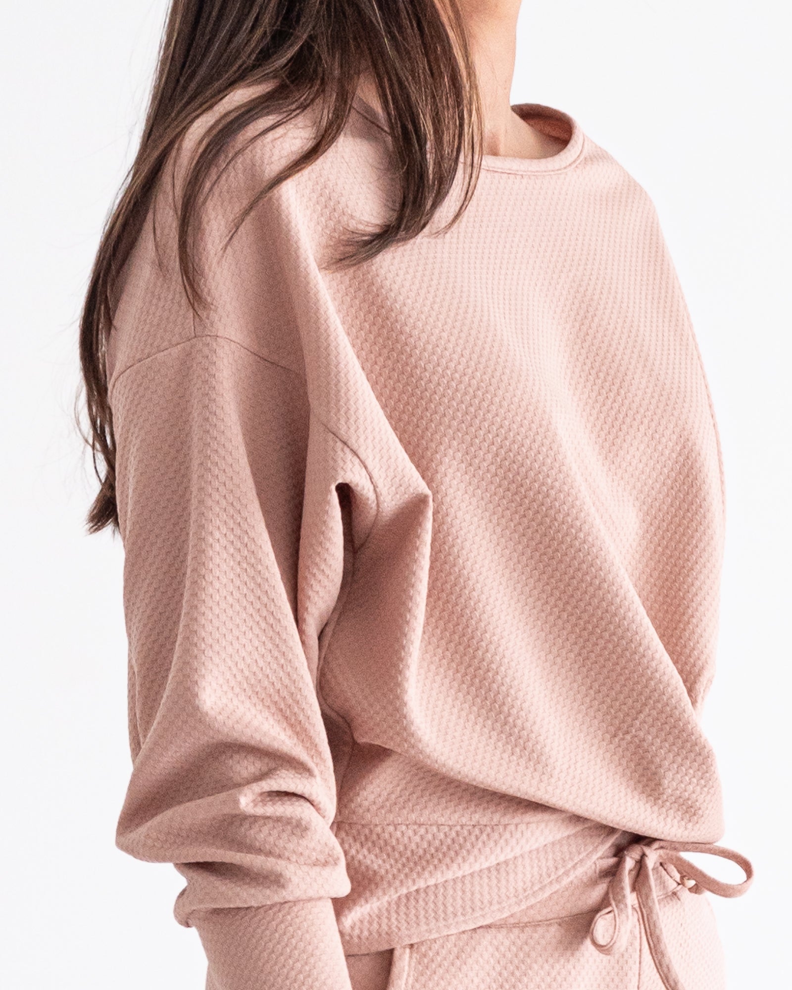 Sweater con recogido delantero y ruches en mangas 65% Poliester 35% Spandex